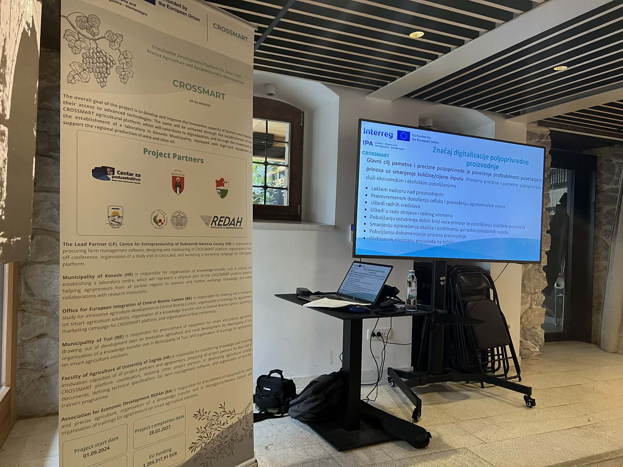 Predavač na radionici bio je g. Ivica Sivrić, direktor Asocijacije za ekonomski razvoj REDAH, koja je partner u projektu CROSSMART i zadužena za provođenje edukativnih aktivnosti. Fokus izlaganja bio je na tome kako savremena oprema i digitalni alati mogu pomoći poljoprivrednicima u planiranju proizvodnje, praćenju usjeva i unapređenju poslovanja.
