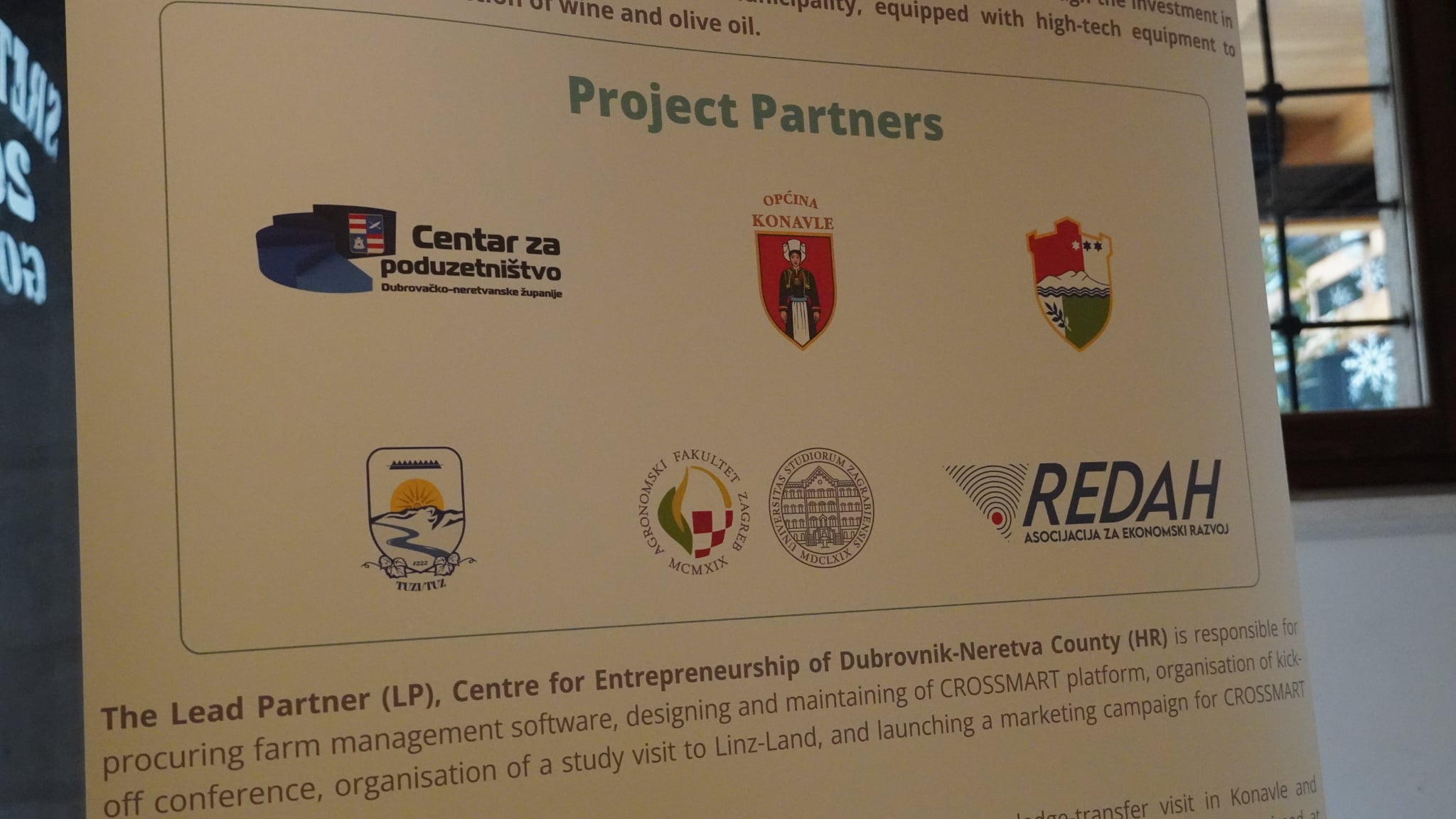 Projekt se financira iz programa Interreg IPA Hrvatska – Bosna i Hercegovina – Crna Gora, te uključuje šest partnera: Centar za poduzetništvo Dubrovačko-neretvanske županije (vodeći partner), Općina Konavle, Ured za europske integracije Srednjobosanskog kantona, Općina Tuzi, Sveučilište u Zagrebu – Agronomski fakultet i Asocijacija za ekonomski razvoj REDAH.